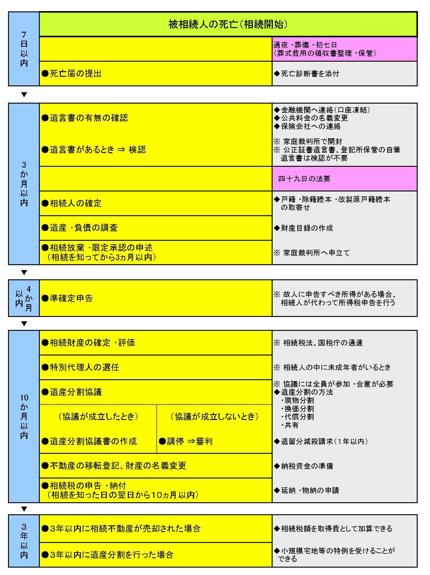 相続が発生してからの必要な手続の流れです。